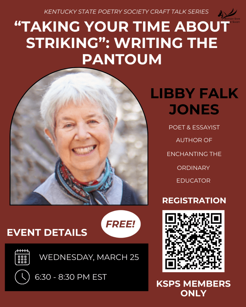 March Craft Talk: “Taking Your Time About Striking”: writing the pantoum with Libby Falk Jones