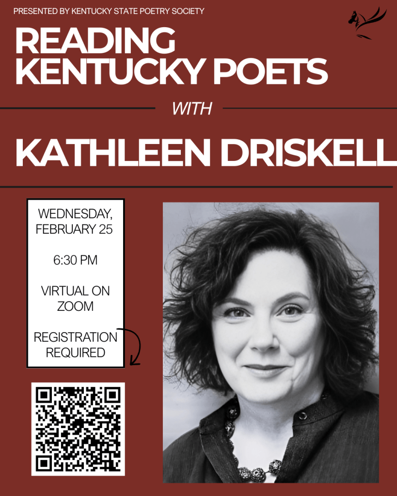 Join your KSPS friends in another intimate and informative online meeting with Kentucky Poet Laureate Kathleen Driskell! In the February edition of READING KENTUCKY POETS WITH KATHLEEN DRISKELL, she will walk us through a close reading of poems by Richard Lawrence Taylor, Nikky Finney and Gaylord Brewer. You don’t want to miss it!