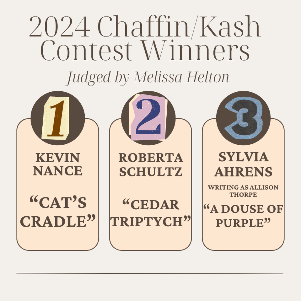 Chaffin/Kash Poetry Prize: Exclusive to KSPS members, this annual contest celebrates outstanding poetic works. The 2024 competition saw a record number of submissions, with Melissa Helton, Literary Arts Director of Hindman Settlement School, serving as the judge.